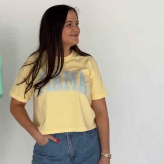 Mama Ivory Crop Tee (Custom Text Color)